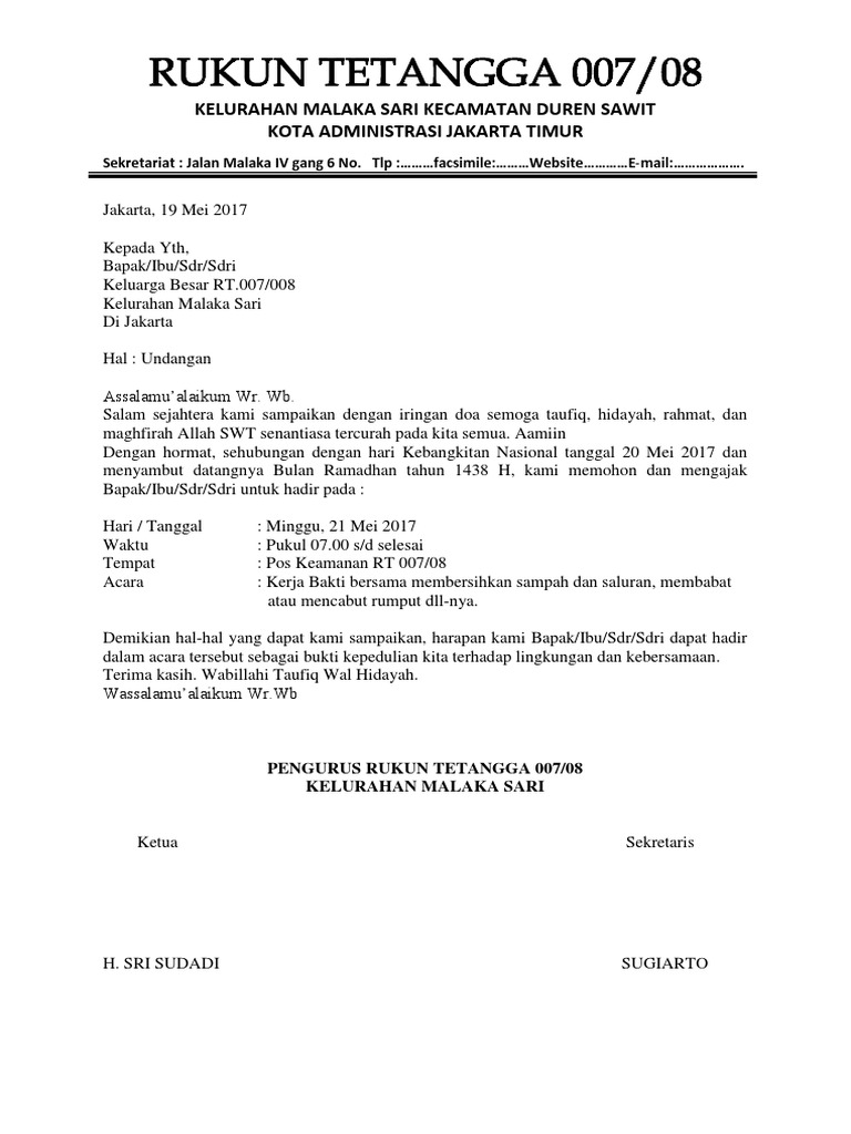 Contoh Surat Undangan Arisan RT Yang Baik | Belajar Office