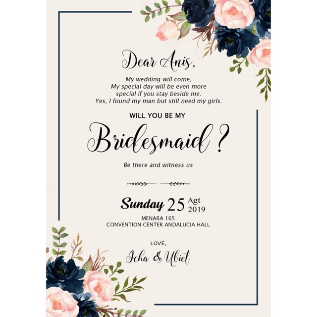 Jual BRIDESMAID INVITATION/CARD/ATTIRE GUIDE - CUSTOM - Jakarta Utara - OJA-Store | Tokopedia