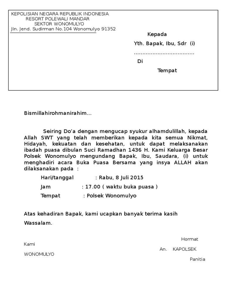 Contoh Surat Undangan Buka Puasa Bersama | Folder Contoh Surat