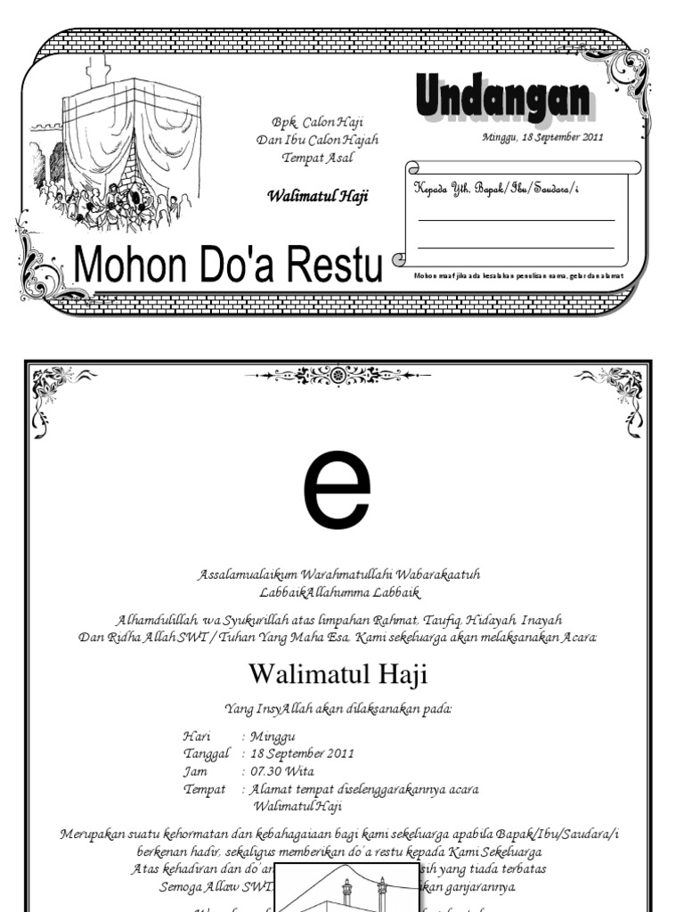 Contoh Undangan Walimatussafar Haji Doc - Nusagates
