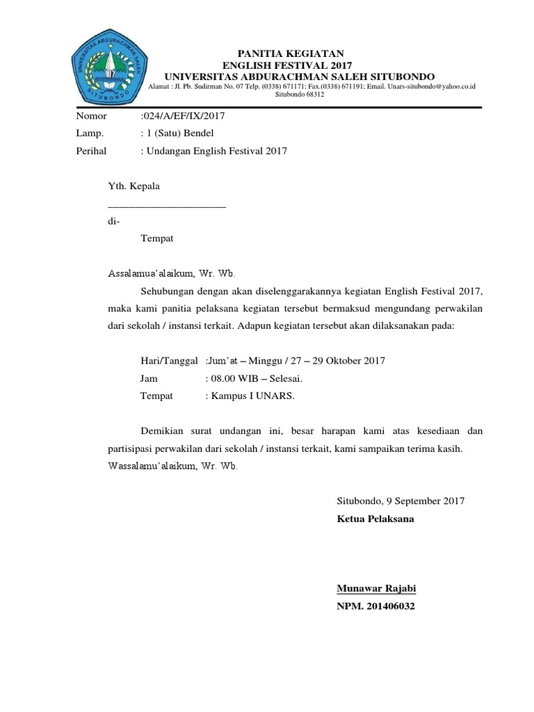 Contoh Surat Undangan Lomba Ke Sekolah - Sample Surat Undangan