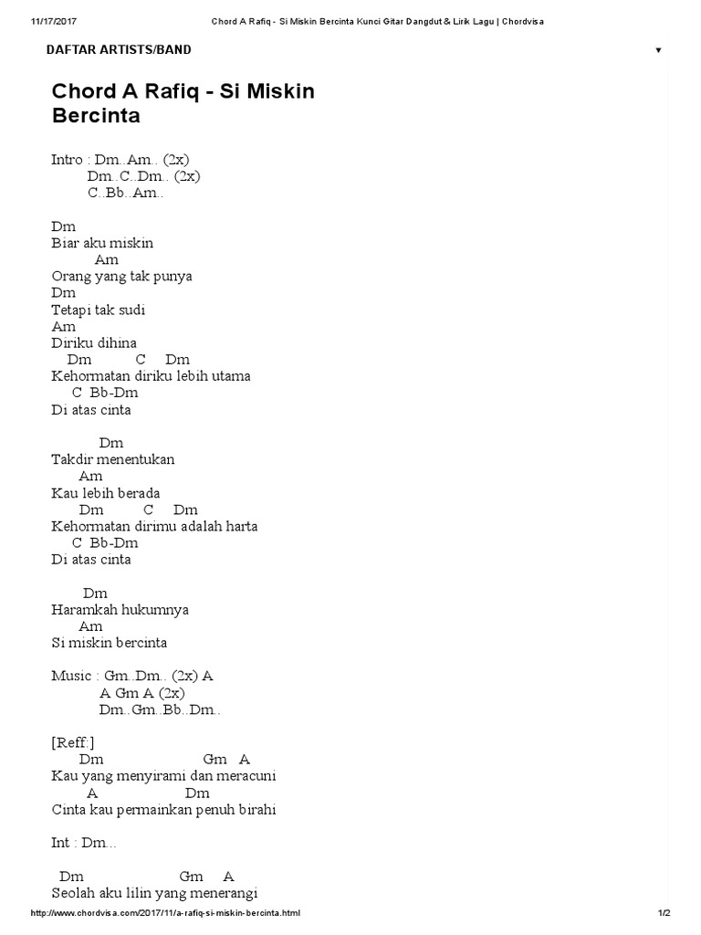 Chord a Rafiq - Si Miskin Bercinta Kunci Gitar Dangdut & Lirik …
