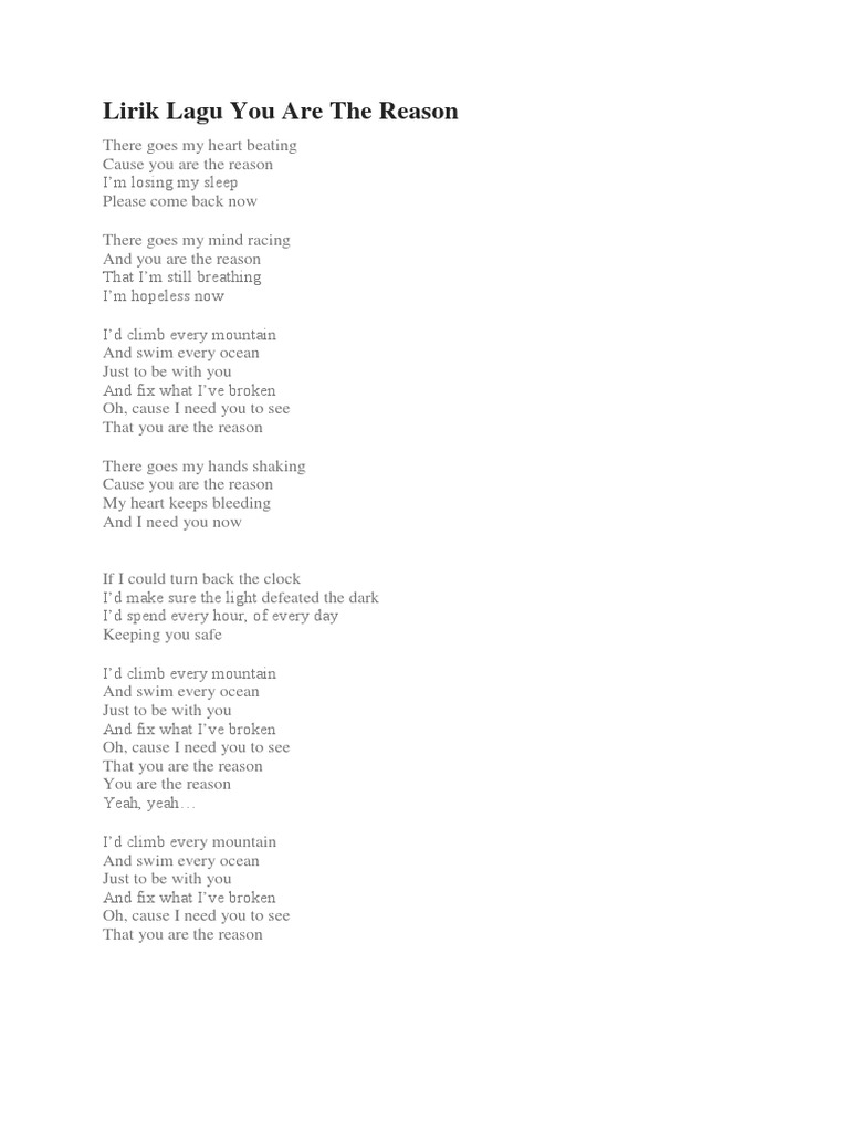 Lirik You Are The Reason Download