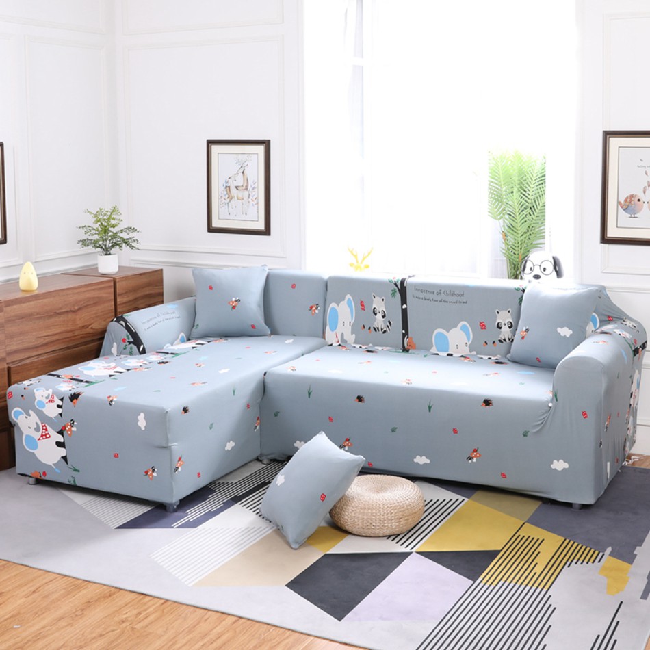 Cartoon Grey Elephants Elastic L Shape Sofa Covers 1/2/3/4 Seat Size | Shopee Singapore