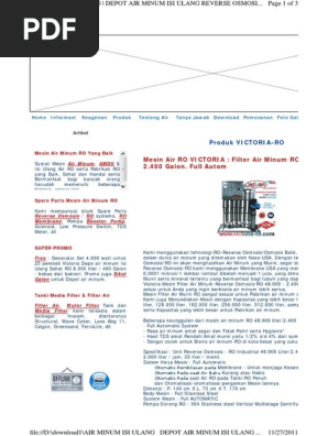 Depot Air Minum Isi Ulang Mineral Drinking Water & RO (Reverse Osmosis) PROPOSAL PENAWARAN. INVIRO [Water Treatment Solution] - PDF Download Gratis