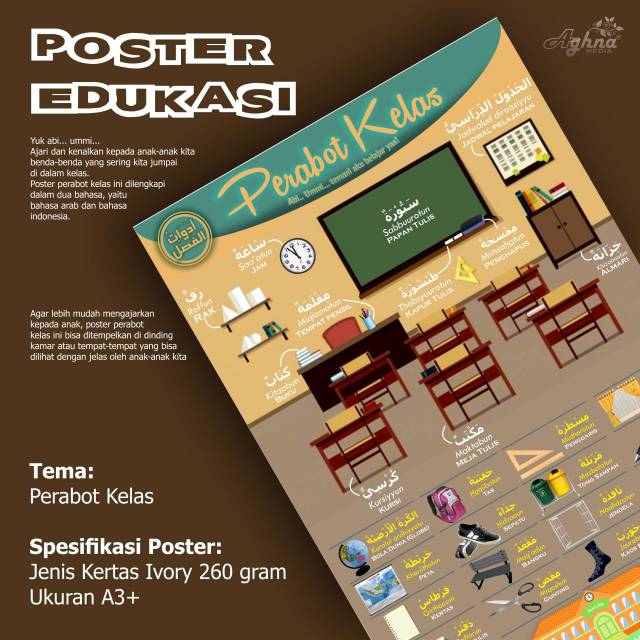POSTER DINDING - mengenal perabot edukasi dalam bahasa arab indonesia desain unik menarik tsaqif | Shopee Indonesia