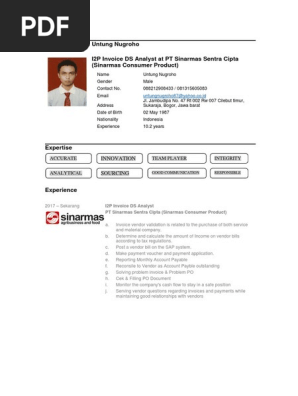 Untung Nugroho I2P Invoice DS Analyst at PT Sinarmas Sentra Cipta (Sinarmas Consumer Product) | Accounts Payable | Voucher