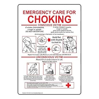 Emergency Care for Choking Sign, 14x10 inch Plastic for Emergency Response by ComplianceSigns: Amazon.com: Industrial & Scientific