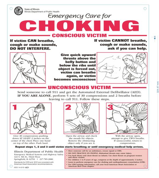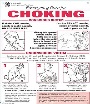 Amazon.com: Emergency Care for Choking Poster State of Illinois Sign (White, Rust Free Aluminium 10x12): Industrial & Scientific