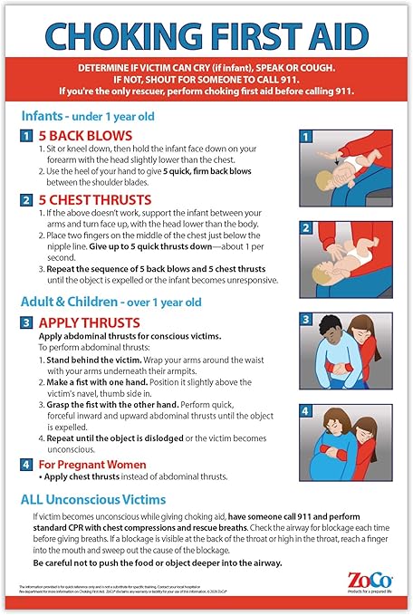 Amazon.com: First Aid Choking Poster - Choking Poster Laminated - Choking Victim Poster - Heimlich Maneuver Poster - First Aid Poster for Babies, Children, and Adults - 12 x 18: Everything Else