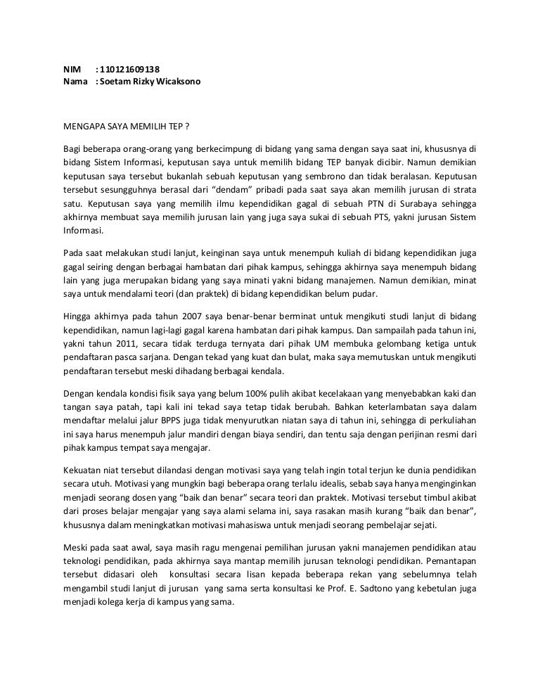Essay Alasan Pemilihan Jurusan Essays - Blitar Regency, Free Essays