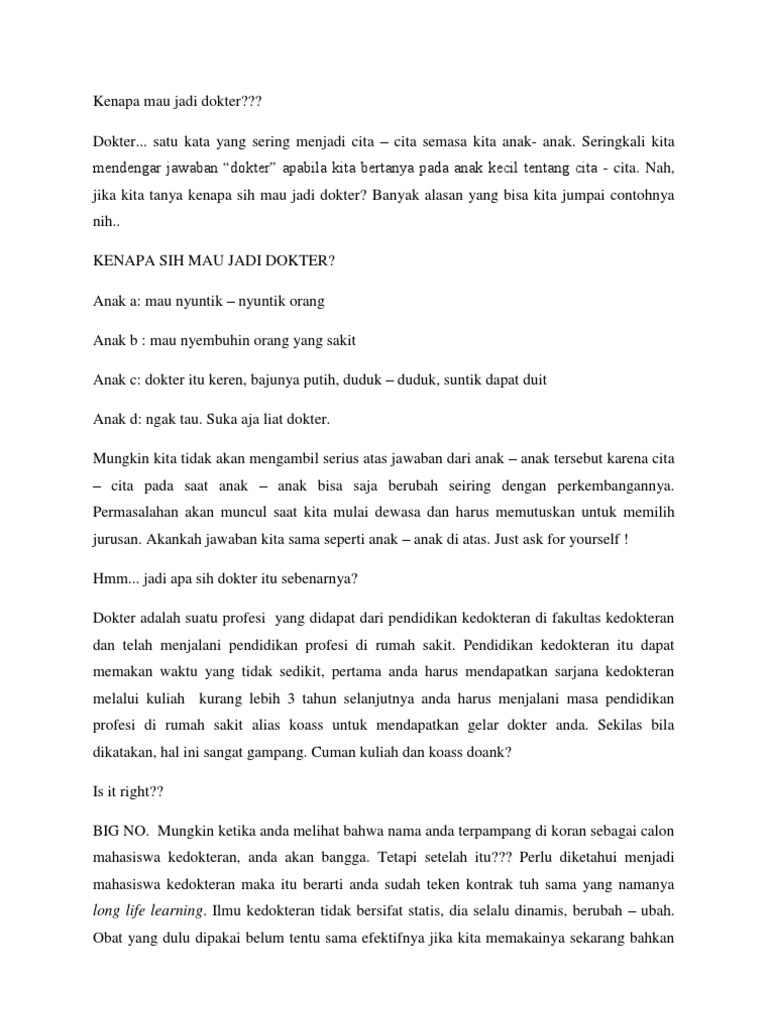 Kenapa Mau Jadi Dokter??