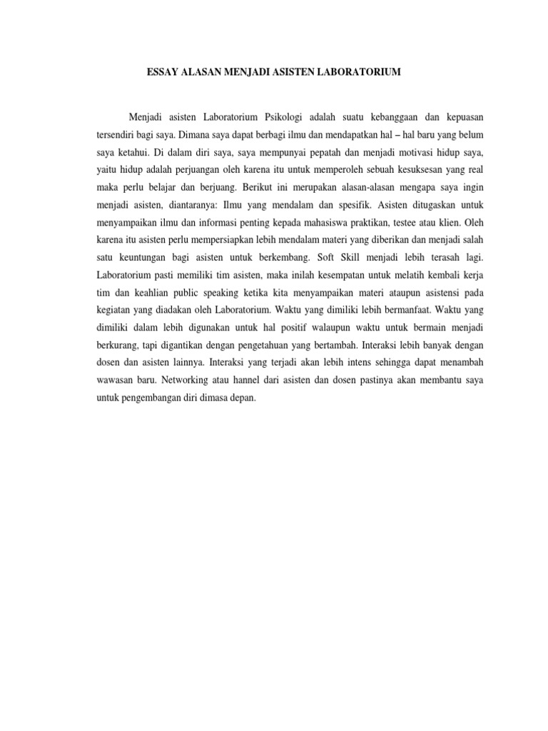 Essay Alasan Menjadi Asisten Laboratorium