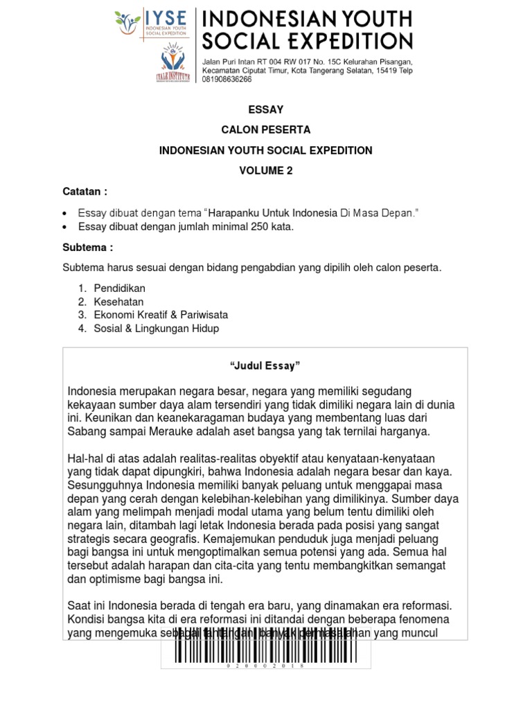 Essay Calon Peserta Indonesian Youth Social Expedition Catatan