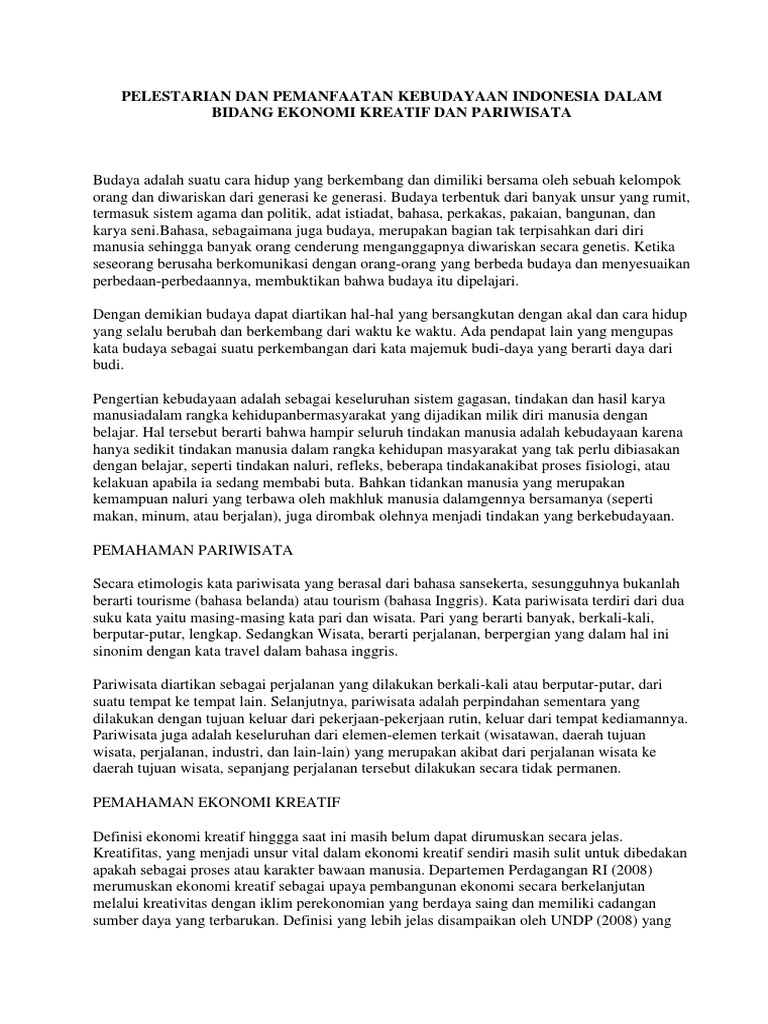 PDF) PEMANFAATAN POTENSI PARIWISATA SEBAGAI SARANA MEWUJUDKAN KESEJAHTERAAN RAKYAT Sebuah Studi Terhadap Peran Pariwisata Sebagai Stimulus Pertumbuhan Ekonomi Kreatif Indonesia | Desiana Rizka Fimmastuti - Academia.edu