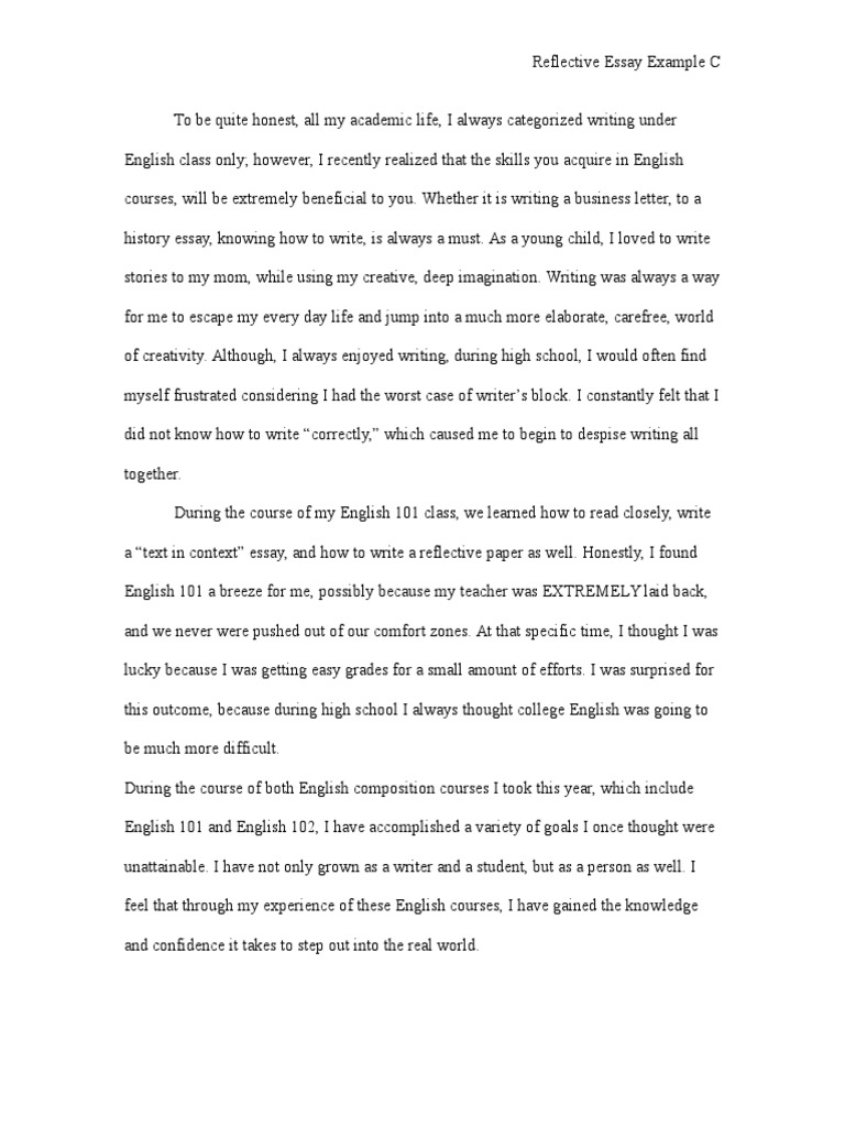 Examples Of Reflective Essays In English