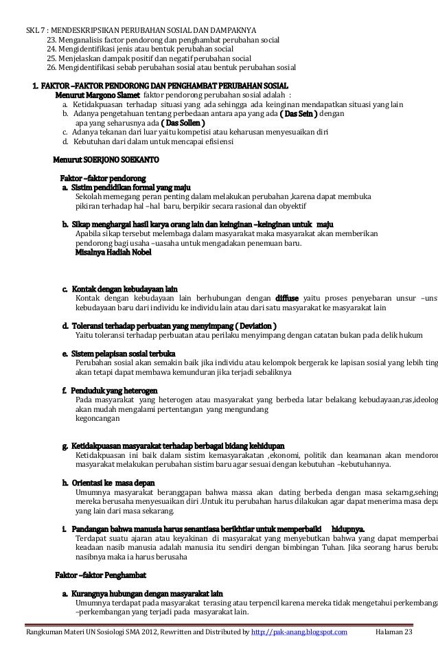 kumpulan materi pelajaran dan contoh soal 7: Perubahan Sosial Budaya Dalam Masyarakat