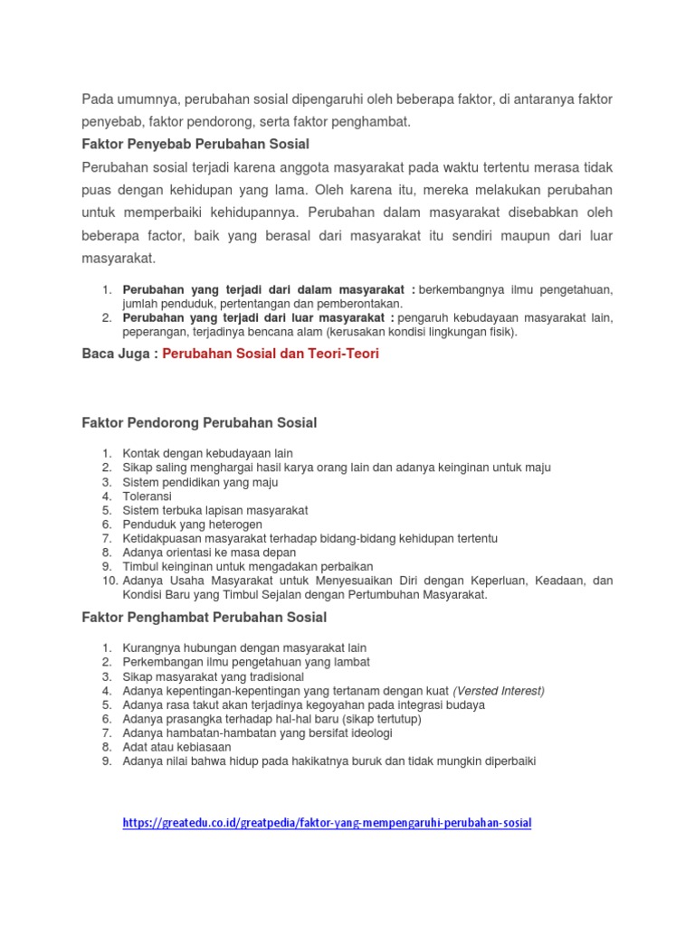 Faktor Pendorong dan Penghambat Perubahan Sosial Halaman all …