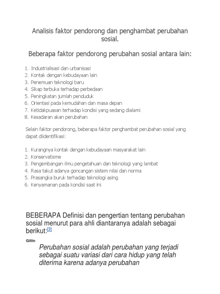 Faktor Pendorong dan Penghambat Perubahan Sosial Halaman all …
