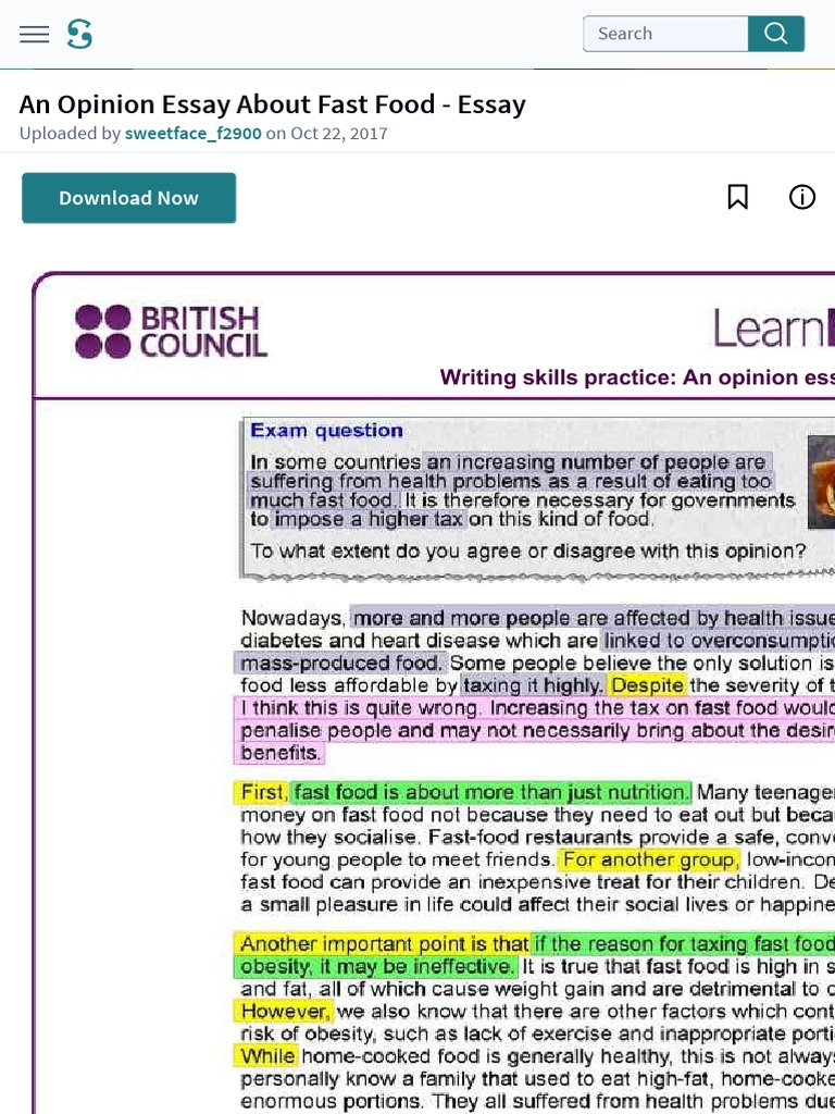An opinion essay about fast food | Essay writing skills, Ielts writing, Opinion essay