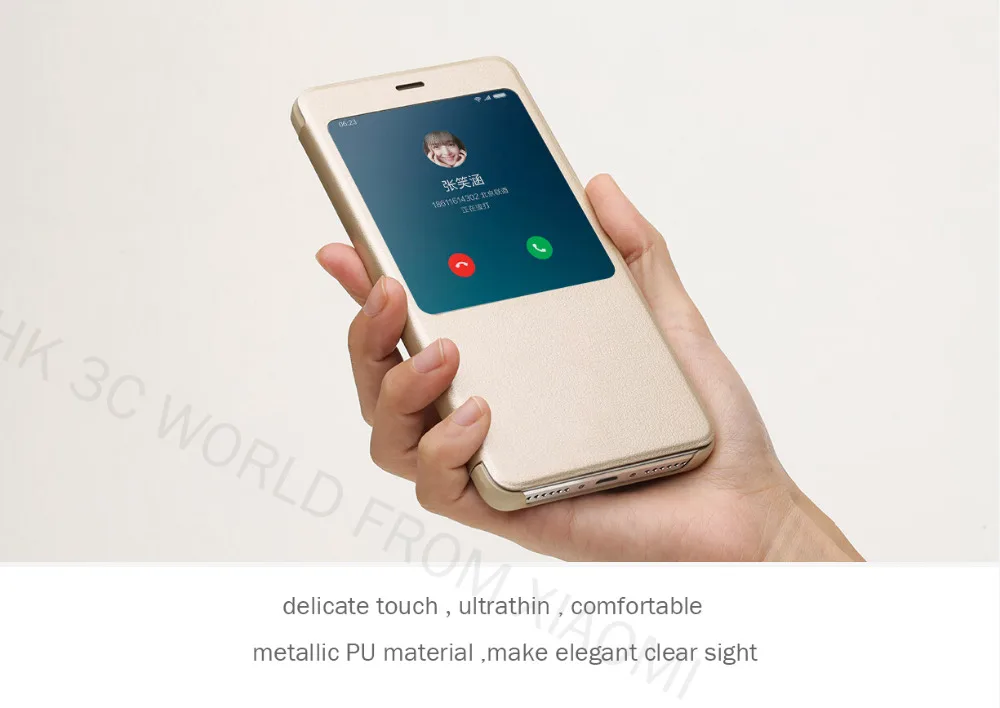 MiaLion.Com : NILLKIN Sparkle PU Leather Case Window Smart Sleep Flip Cover For Xiaomi Redmi Note 4
