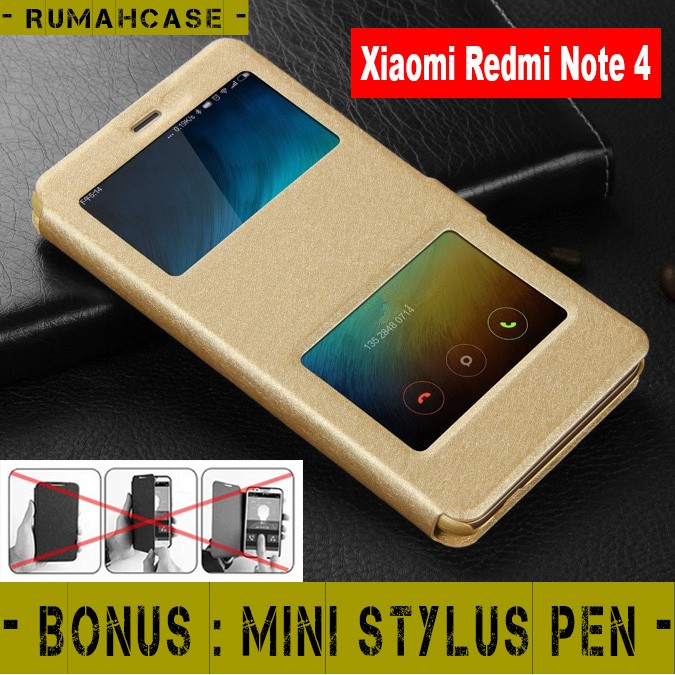 Xiaomi Redmi Note 4 / 4X Mediatek - Flip Cover Dual Window Magnet Clip Case Casing Cover snapdragon | Shopee Indonesia