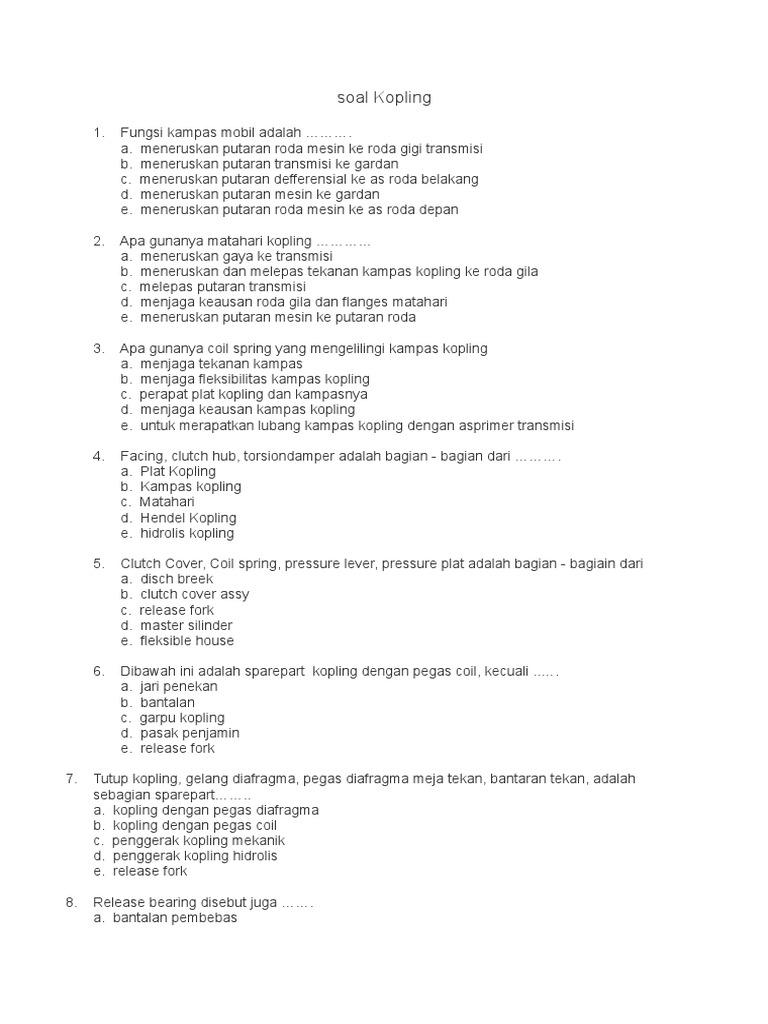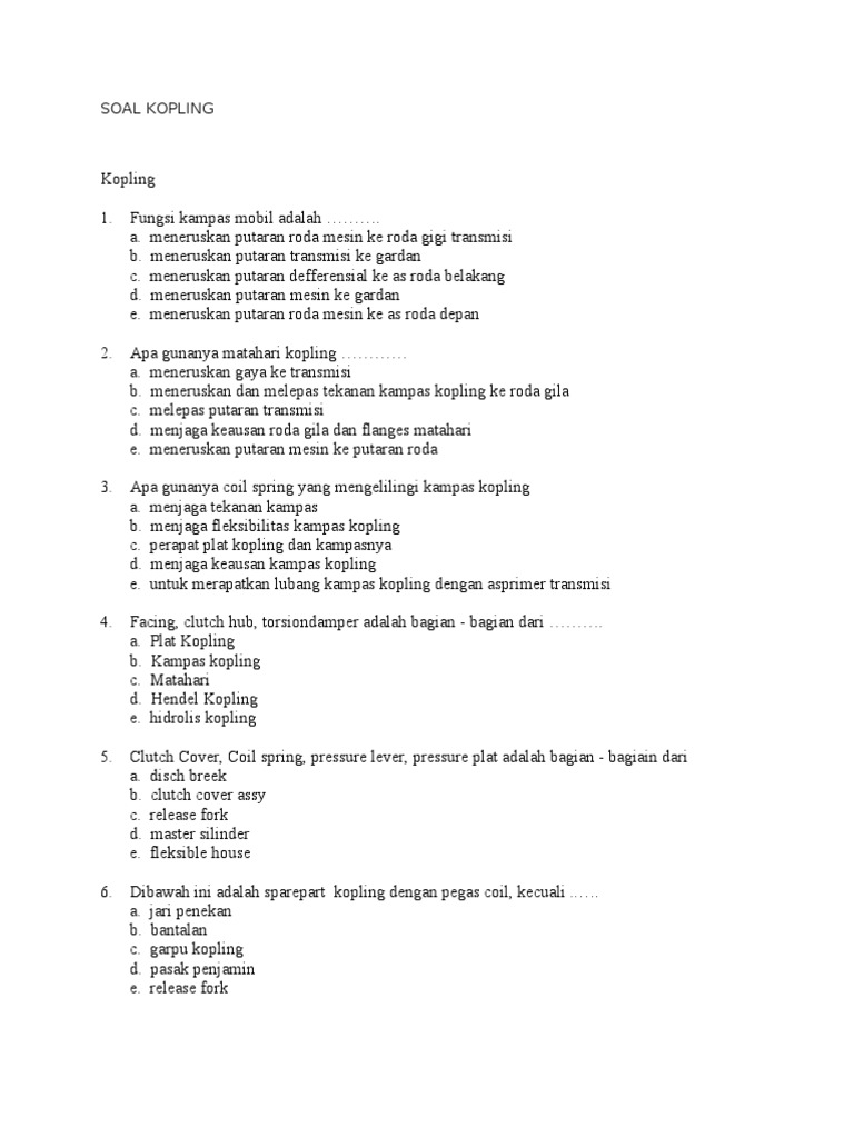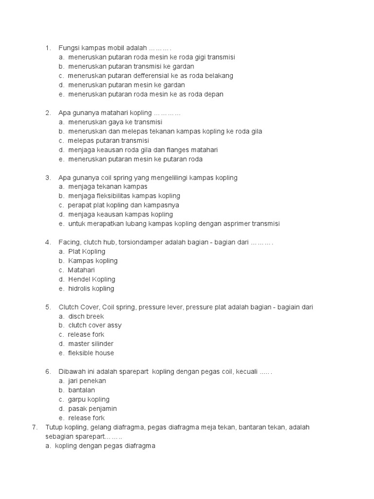 Soal Pilihan Ganda Sistem Kopling | teknik-otomotif.com
