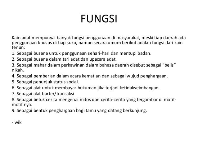 Secara Adat, Lima Fungsi Kain Tenun adalah …