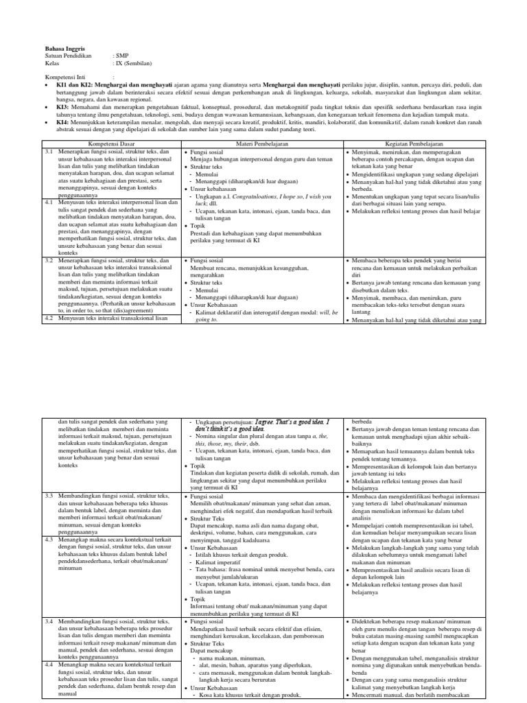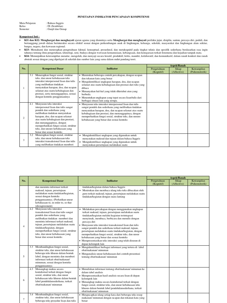 DOC) SILABUS SMA/MA Mata Pelajaran : BAHASA INGGRIS-WAJIB Kelas : XI Kompetensi Inti | Kiki Kiki - Academia.edu