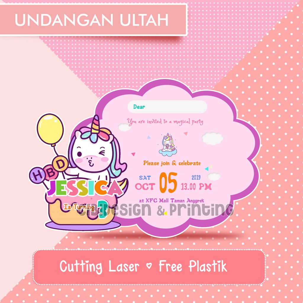 Kartu Undangan Ultah / Ulang Tahun Anak Unik Unicorn Cutting | Shopee Indonesia