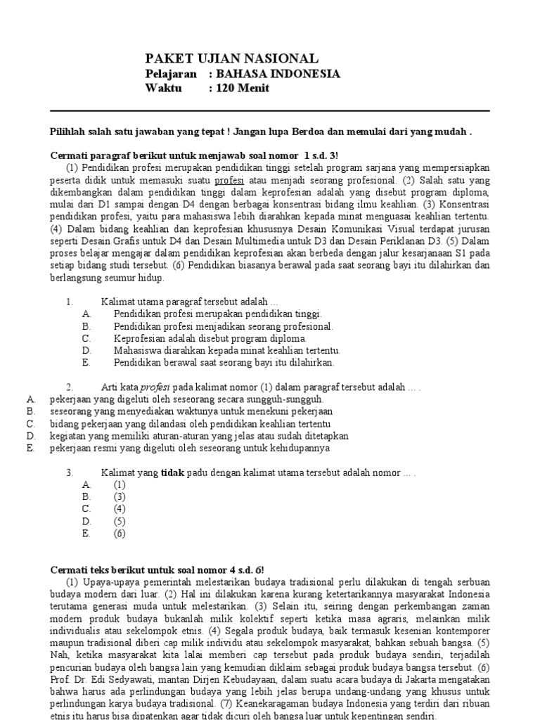 Soal UASBN Susulan Bahasa Indonesia