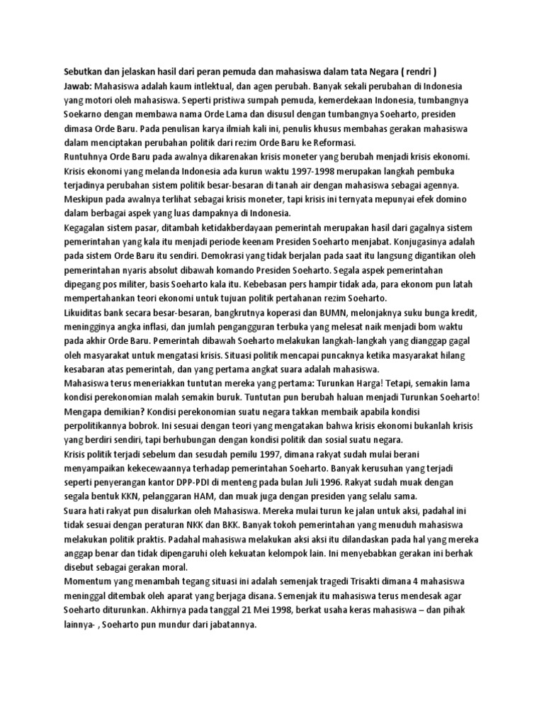 Sebutkan Dan Jelaskan Hasil Dari Peran Pemuda Dan Mahasiswa Dalam Tata Negara