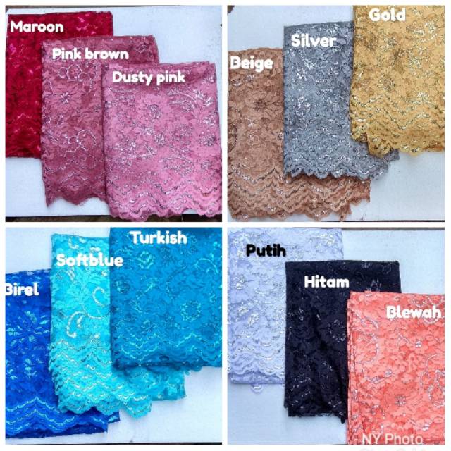 TER-MURAH!!! Jual Kain Brokat Renda Glitter, Kain Brukat Tebal …