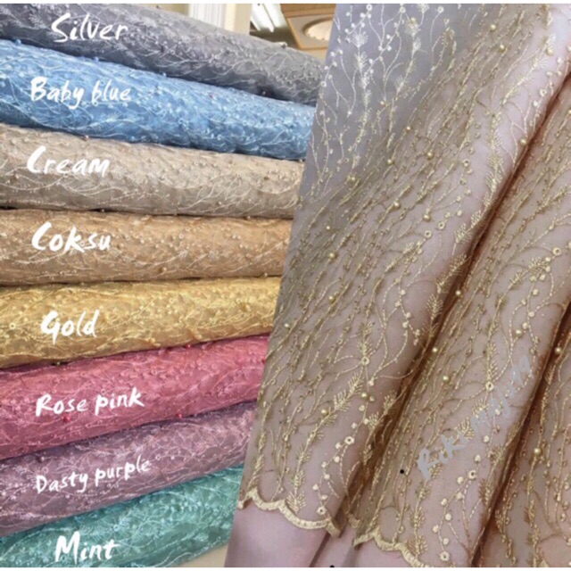 Kain Brokat tulle payet/bahan brukat/tulle bordir payet/harga permeter | Shopee Indonesia
