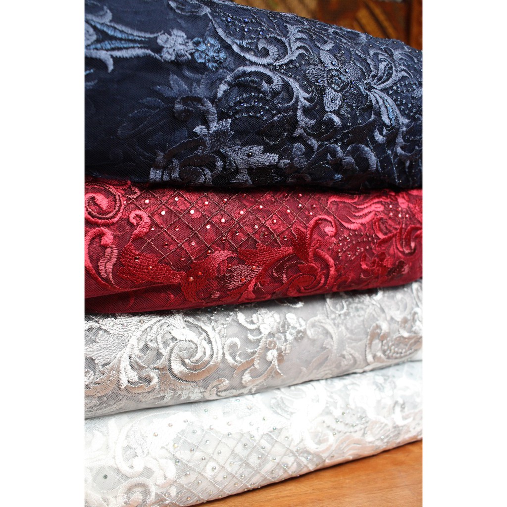 Jual Jual Kain brokat tulle bordir/tulle bordir/ harga permeter Murah - Kab. Cirebon - barokahkaincrb | Tokopedia