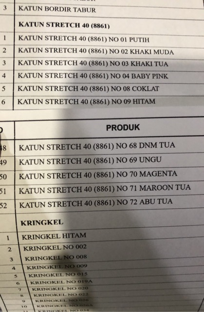 Daftar harga Kain Katun Stretch Bulan Oktober 2020