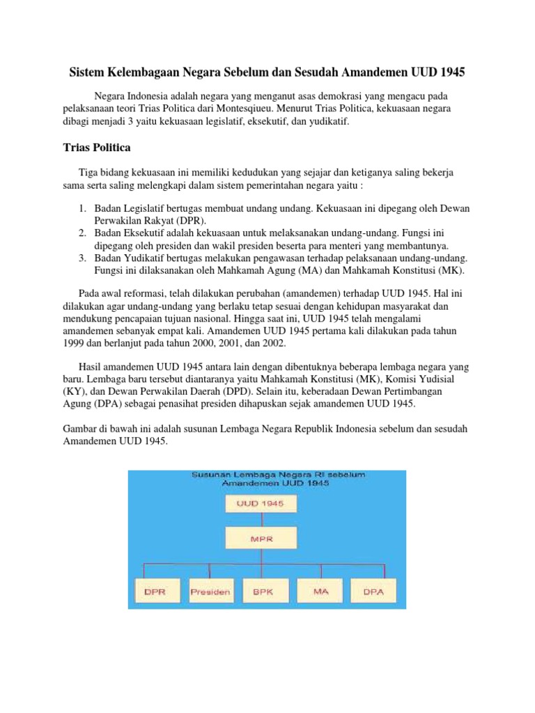 Sistem Kelembagaan Negara Sebelum dan Sesudah Amandemen …