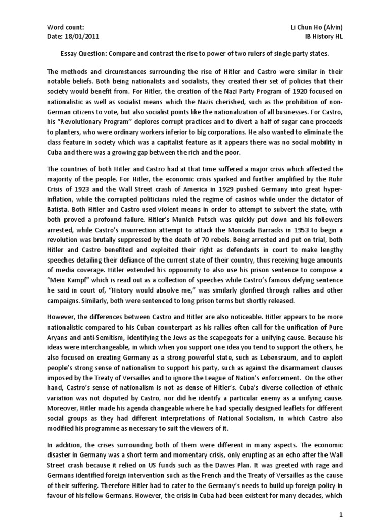Essay Question Compare and Contrast the Rise to Power of Two Rulers of Single Party States | Fidel Castro | Adolf Hitler