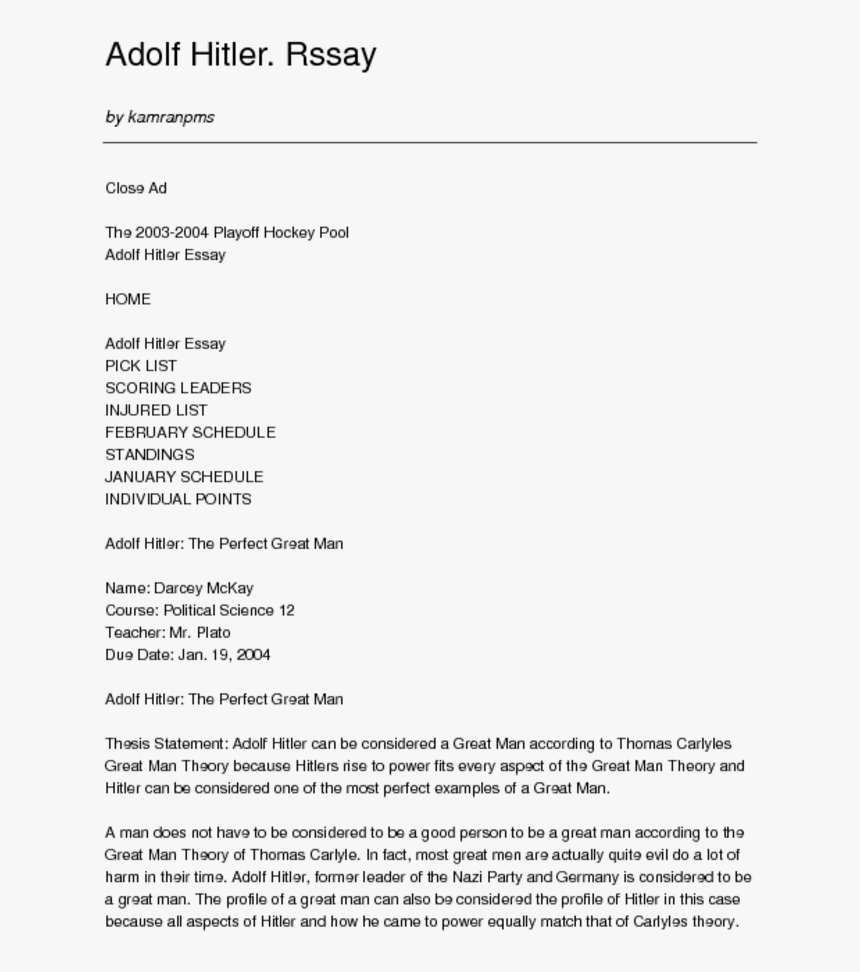 Adolf Hitler Essay, HD Png Download , Transparent Png Image - PNGitem