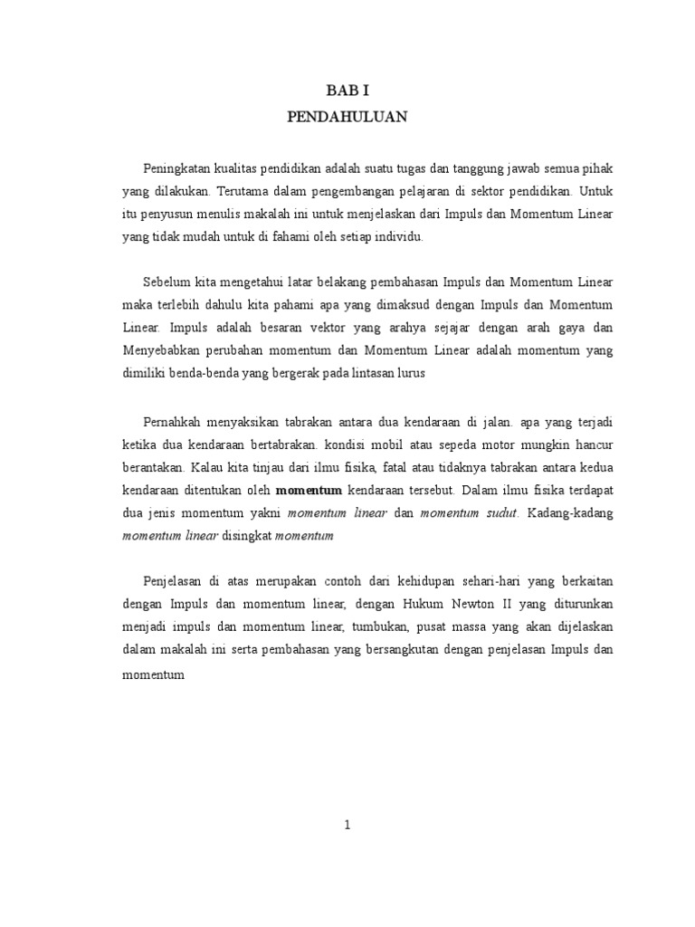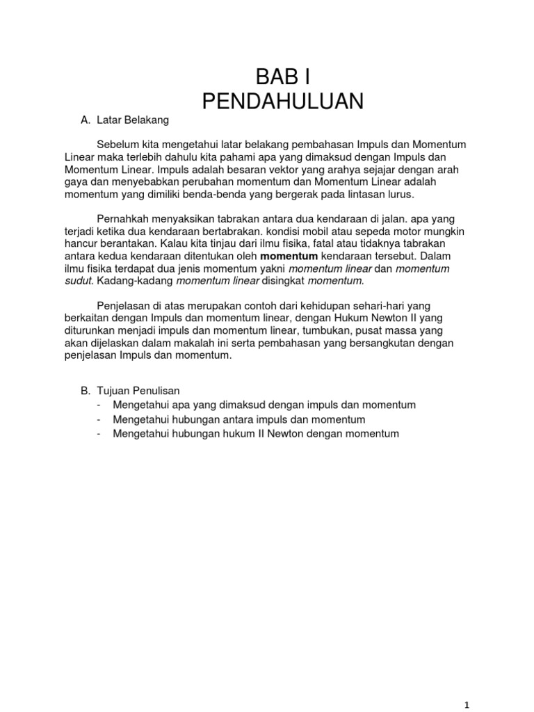 makalah-momentum-dan-impuls1.doc - BAB I PENDAHULUAN 1.1 LATAR BELAKANG Sebelum kita mengetahui latar belakang pembahasan Impuls dan Momentum Linear | Course Hero