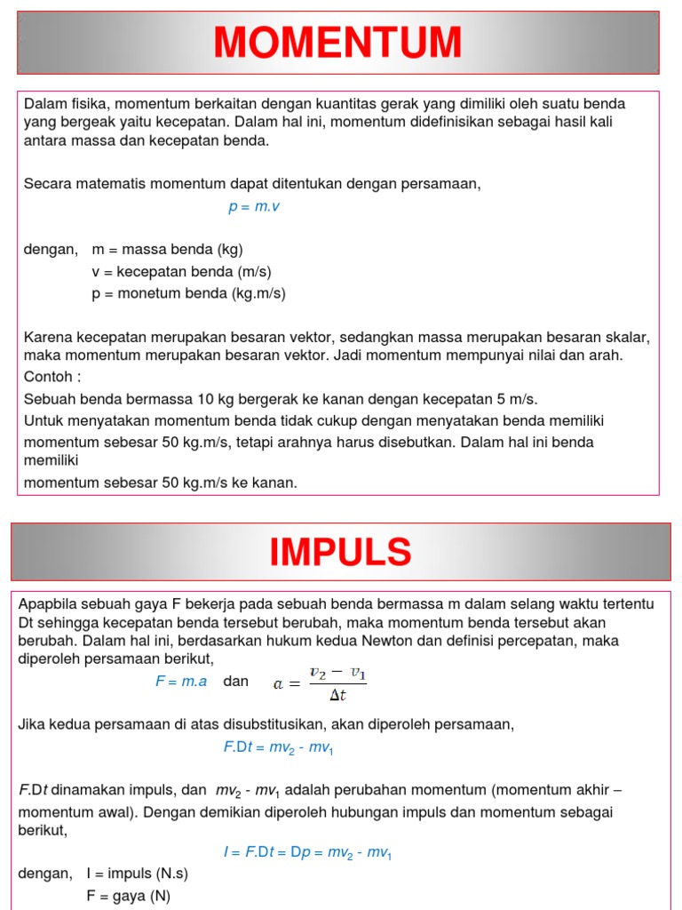 Fisika: Rumus Momentum dan Implus serta Tumbukan ~ RUMUS MATEMATIKA FISIKA