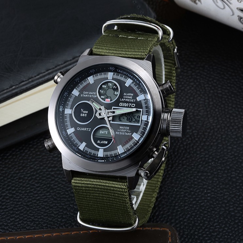 GIMTO Tali Kulit Tali Kain Nylon Jam Tangan Pria 3 Mata Digital Men Watch | Shopee Indonesia