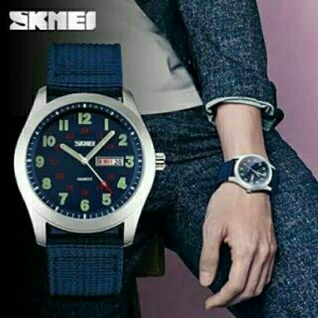 Jam tangan pria cowok skmei ori original tali canvas kanvas luminous bs menyala dalam gelap fosfor | Shopee Indonesia