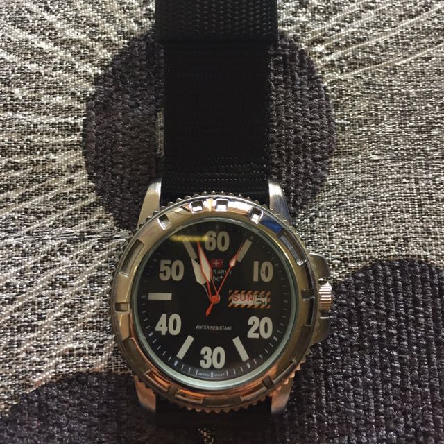Jam tangan pria Swiss Army. Tali Kanvas. Hitam, Fesyen Pria, Jam Tangan di Carousell