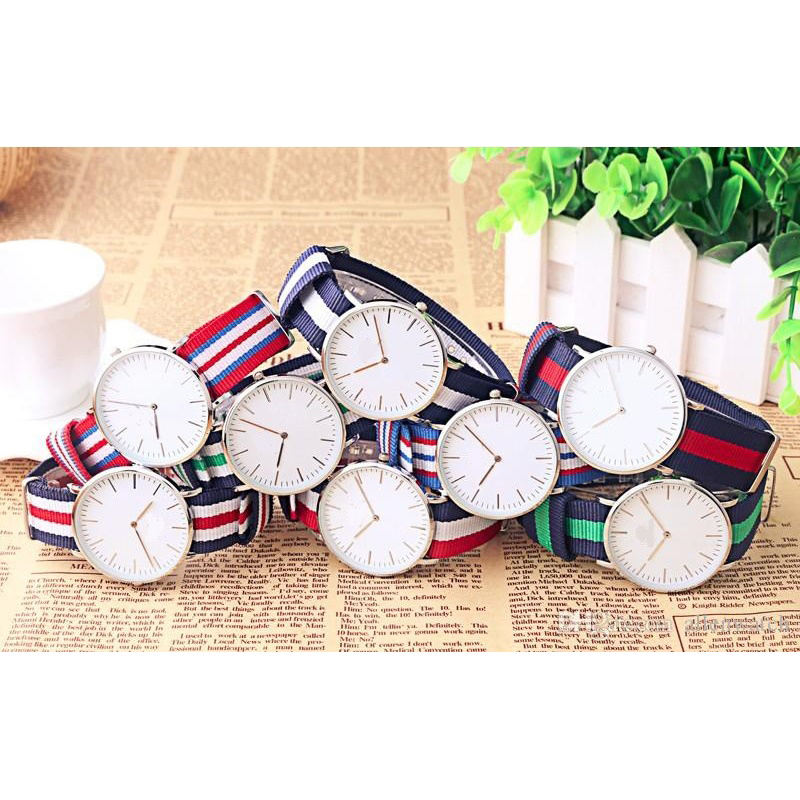 JAM TANGAN UNISEX PRIA WANITA DW KANVAS KAIN BIRU PUTIH MERAH CRONO VARIASI di Lapak DEMORIN SHOP | Bukalapak