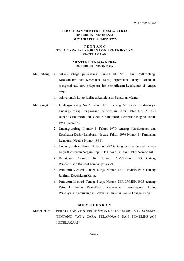 Per 03 men-1998-tentang-tata-cara-pelaporan-dan-pemeriksaan-kecelakaan