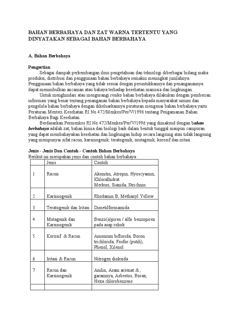 Uuk Bahan Berbahaya Dan Zat Warna Tertentu Yang Dinyatakan Sebagai Bahan Berbahaya