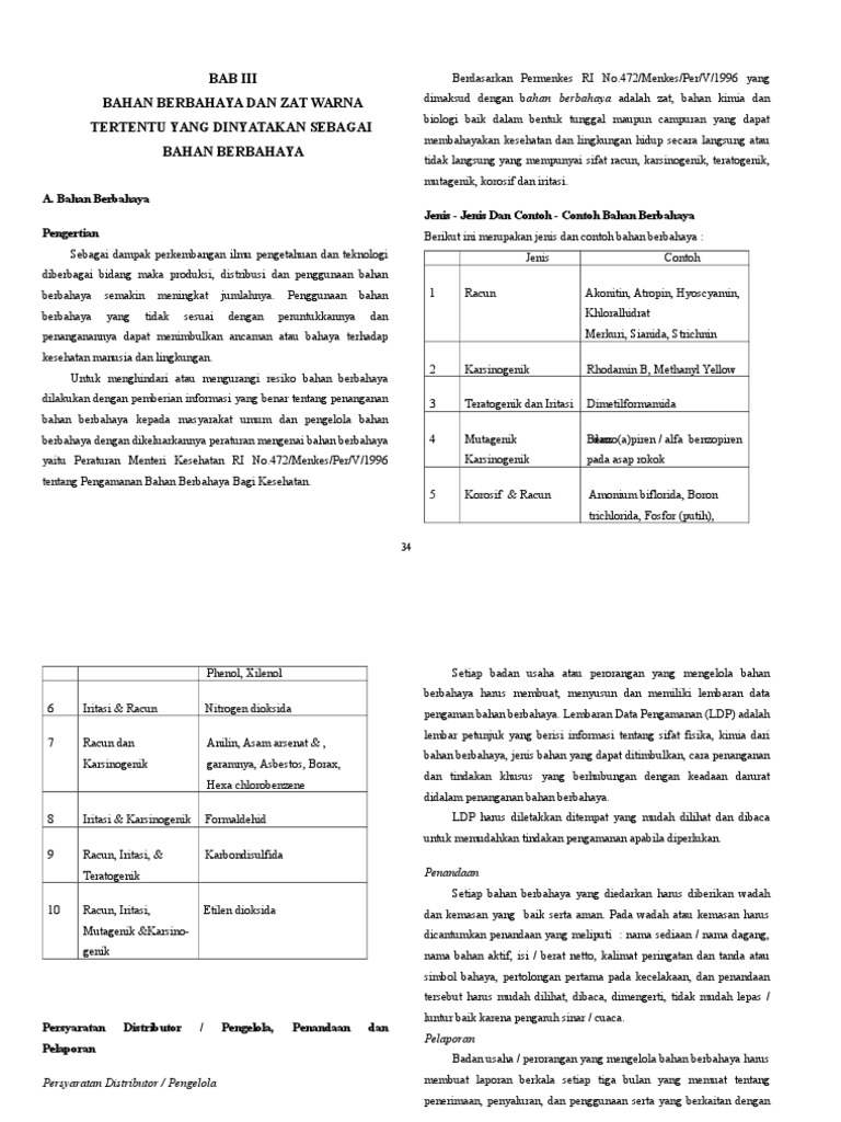 Bahan Berbahaya Dan Zat Warna Tertentu Yang Dinyatakan Sebagai Bahan Berbahaya