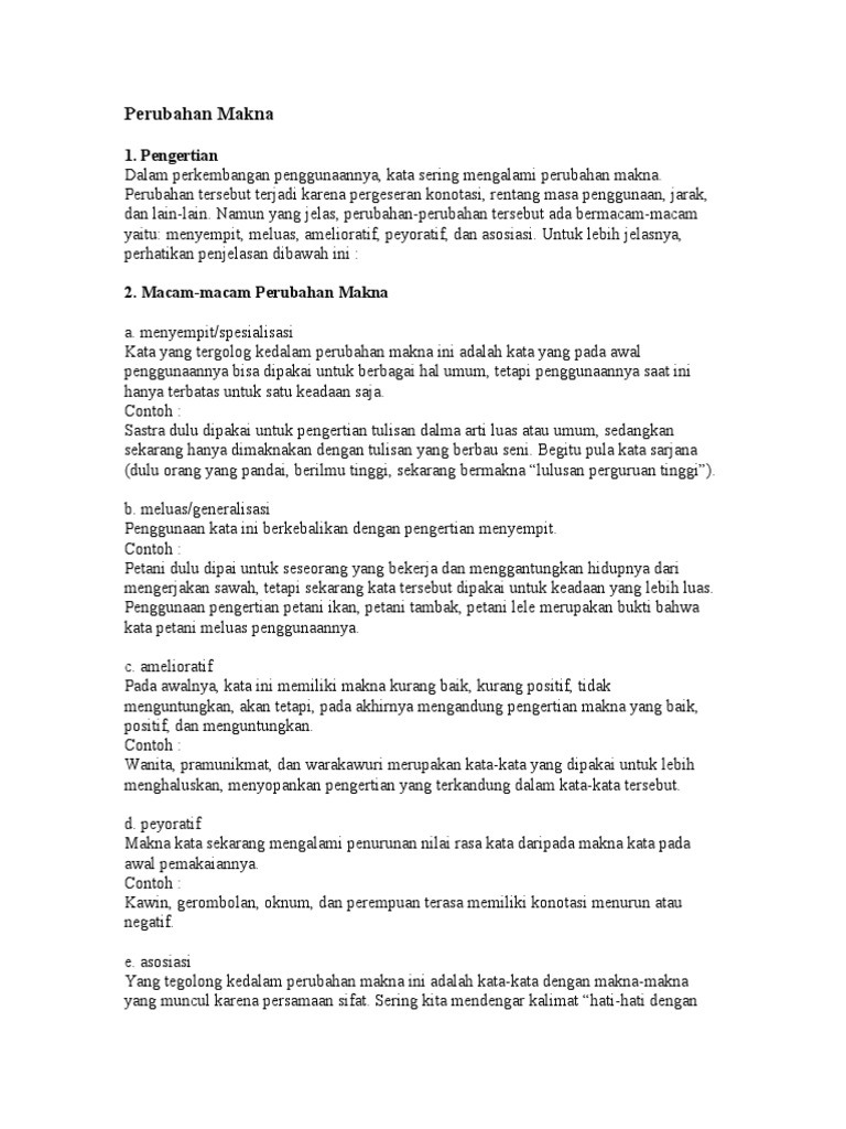 Jenis Jenis Perubahan Makna Kata Dan Contohnya