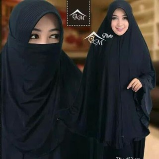 Set Khimar Syari Pita India Non Pet Niqab Bandana Jetblack Alsyahra Exclusive | Lazada Indonesia